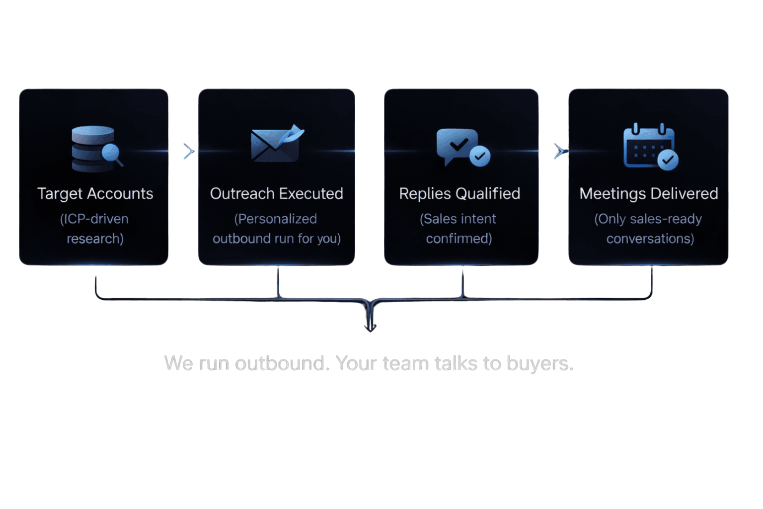We design, build, and operate AI-powered GTM systems that scale. Outcome-based engagement — if we don’t book meetings, you don’t pay.